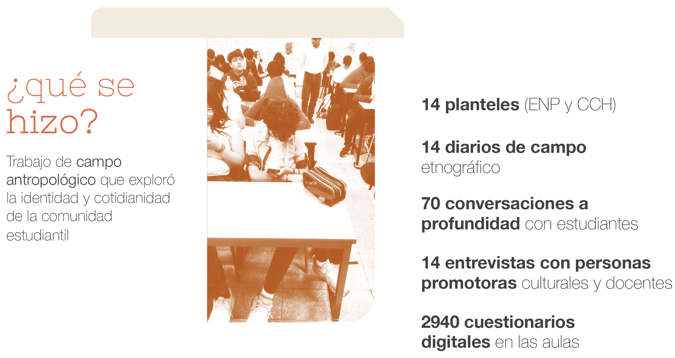 La Universidad Nacional Autónoma de México, a través de la Coordinación de Difusión Cultural y la Cátedra Internacional Inés Amor en Gestión y Políticas Culturales, en colaboración con la Fundación UNAM y las direcciones generales de la Escuela Nacional Preparatoria y el Colegio de Ciencias y Humanidades, presenta los resultados del estudio Cultura, ¿qué es, dónde vive y cómo se consume?, realizado por Bitácora Social.